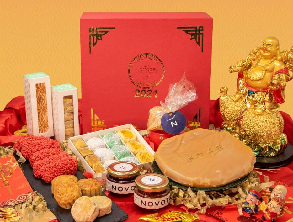 Spread good tidings to all with Novotel Manila’s Prosperity Box (P2500) with assortment of luscious flavours in a good luck box including glutinous rice cakes or nian gao, egg tarts, lo mai chi, ampaw crispies, mooncake, dice hopia, chili sauce and scallops XO sauce in a jar. Believed to be symbols of good luck according to Chinese belief, these lucky treats are sure to wow your friend to compliment as a perfect centerpiece to welcome the Lunar New Year. Exciting lucky red envelope or hongbao (in Mandarin or Cantonese) awaits you. All delicacies are wrapped in exquisite gift boxes, suitable for family, friends and business partners. Advance order of two days is required.