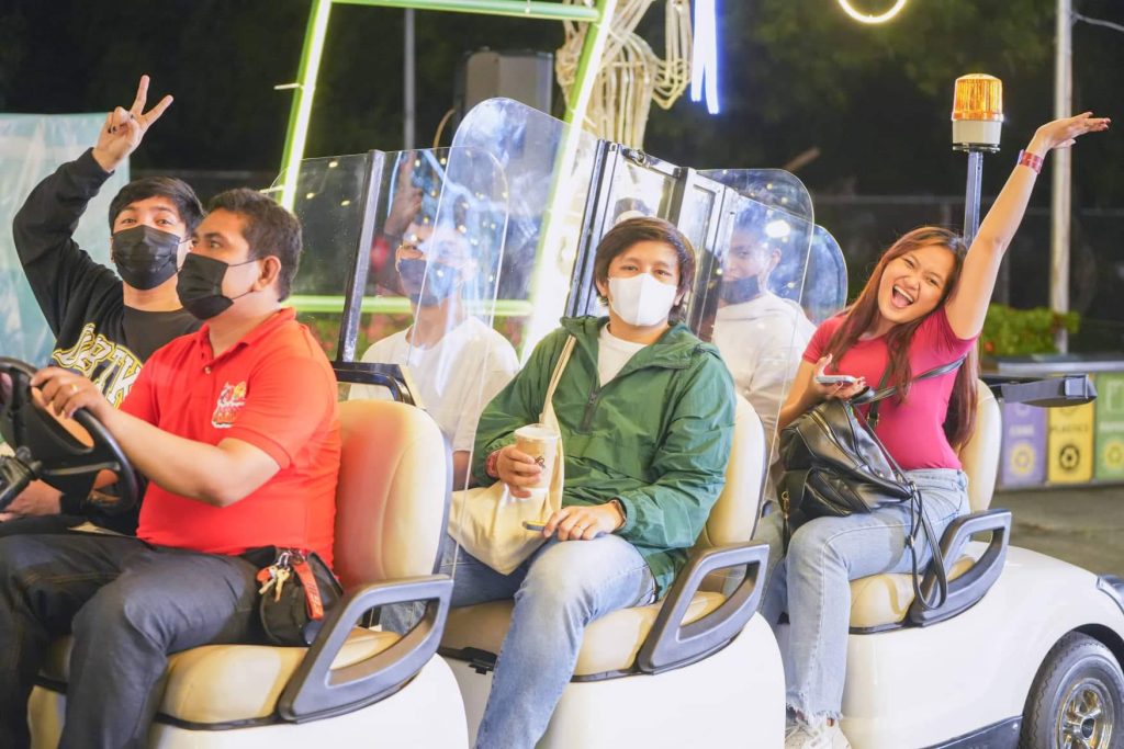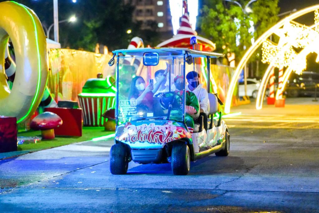 Walk-in entrance to the Outdoor Holidrive is free. However, each ride and activity has its own fees; the Drive-thru Outdoor Holidrive has a purchase requirement of Php 2,500.00 worth of single or accumulated receipts dated from November 1, 2022 to January 8, 2023. Rides such as the Donut Slide, Nitro Drift cost about Php 100 – 150 per turn.