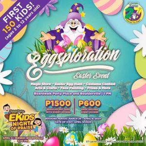 Enchanted Kingdom, the Philippines’ premier theme park, invites families and friends to join Eggsploration, an exciting Easter event happening on April 9, 2023. Eggsploration promises a day of fun activities for the first 150 participants, including a Magic Show, Easter Egg Hunt, Costume Contest, Arts & Crafts, Face Painting, and Prizes & More. This event is open to children ages 3 – 12 years old and may be purchased for 1,500 only which includes a Regular Day Pass plus Event Access. EKMC members and guests with tickets can purchase the Event Access for P600 only.